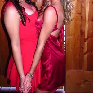 Chic mini dresses from unknown but bought off someone for event. Elegant red satin and bold red styles. Perfect for any occasion!