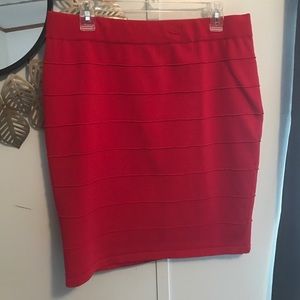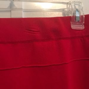 Very stretchy red mini skirt. Does have hanger indentations that could easily be pressed out.