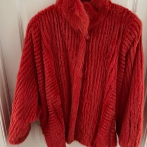Gorgeous vintage Red Mink Fur Jacket, Butterfly Sleeve, blouson, size large, never worn