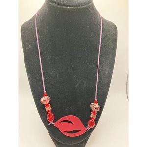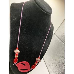 Red Mixed Media (crystals, wood and unknown) with Asian Elements 21 Inch Necklace on black cord!