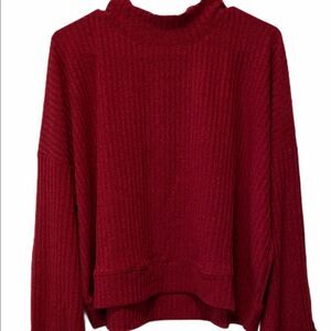 Red Mock Neck Long Sleeve Rib Knit Sweater by Band of Gypsies