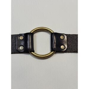 Red Monkey Belt Mens Black Leather Solid Brass Round Buckle Double O-Ring Heavy