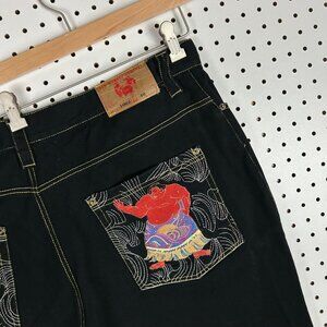 Red Monkey Company Black Jorts Size 40 Denim Shorts Y2K Stitched Chinese Gold