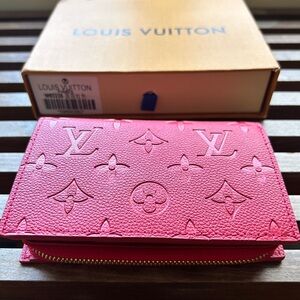 Elegant and stylish, this LV inspired wallet in vibrant red is perfect for any occasion. With multiple card slots and a coin holder, it adds a touch of luxury to your ensemble. Never used! Still have original packaging.