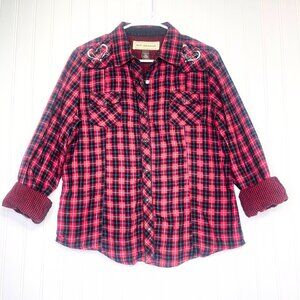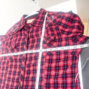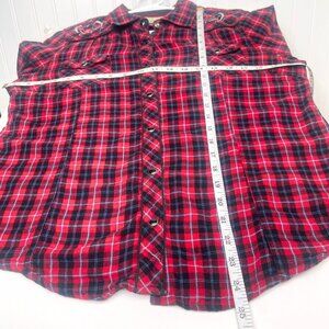 Red Multi Color Long Sleeve Button Up Pearl Snap Flannel Shirt Large
