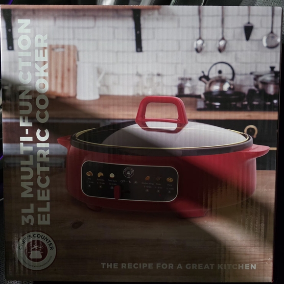 Enhance your kitchen with the Multi-Function Electric Cooker. This red cooker is perfect for versatile cooking needs.