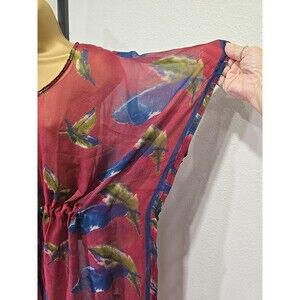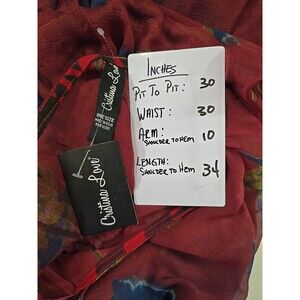 Red Multicolor Tassel Tie Sheer Blouse Top OS Boho Floral Oversized Fairy Grunge