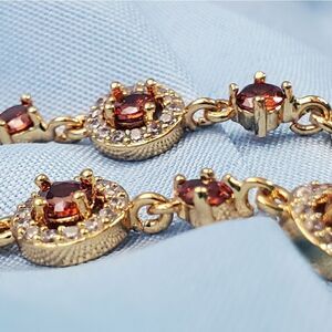Gorgeous Red Mystic Natural Topaz Setting with just the right amount of drop. 18K Gold plating gives it a deep, warm, rich color.