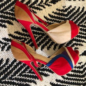 Red Navy Blue Tan Stiletto Heels