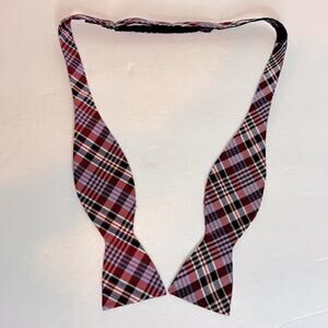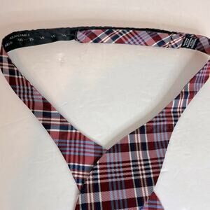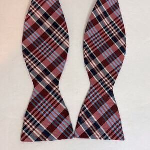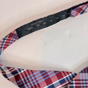 Red Navy Blue White Plaid Silk Adjustable Bow Tie 100% silk EUC Offers welcome!