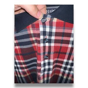 Red & Navy Check Chaps Ralph Lauren Mesh L/S Polo Shirt Size M