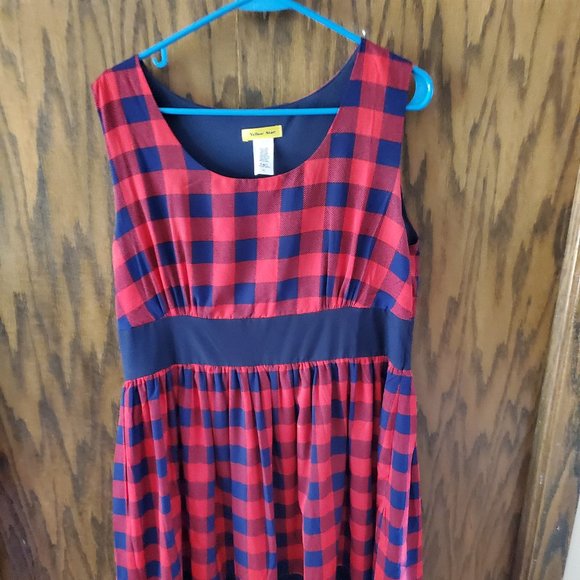 Large block red and navy checked dress from Modcloth in partnership with Yellow star.