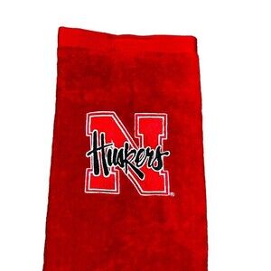 Red Nebraska Cornhuskers Tri-Fold Golf Towel With Hook Team Effort Face Club