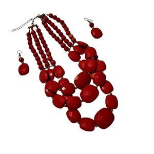 Red Necklace and Earrings Set see measurements