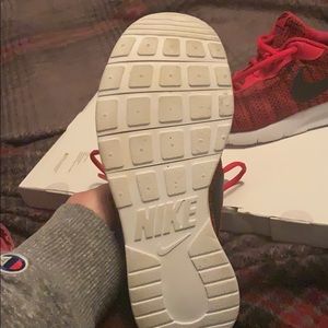 Red nikes with black through out. Gently worn. Size 6y boys!