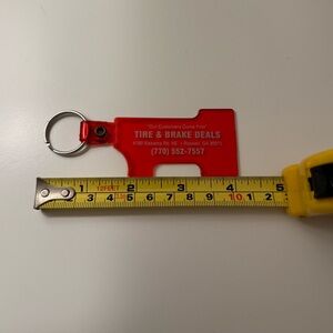 Stylish red keychain in the shape of the number one, perfect for keeping your keys organized.