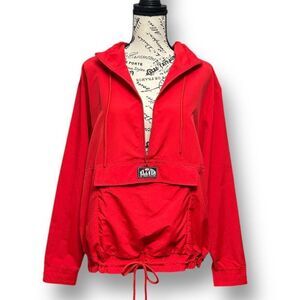 Red Nylon Windbreaker Hoodie Jacket
