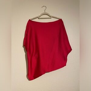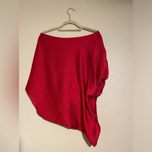 Flowy true red top, I added an online picture to get a better view of the look, true to size but it’s flowy enough to wear it if you need a large, never worn, has elastic waist band, you can technically wear it on either shoulder.