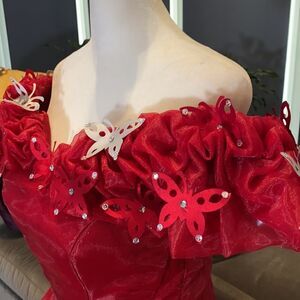 Women’s Red Off the Shoulder Fairy Tale Dress With Butterflies that Sparkles in the light as you move!