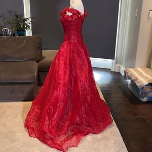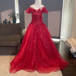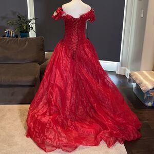 Red Off the Shoulder FairyTale Prom Party Dress Corset Back Sparkles Size 14 NEW