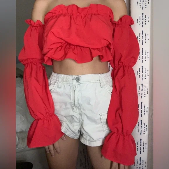 Red Off-Shoulder Ruffle Top