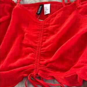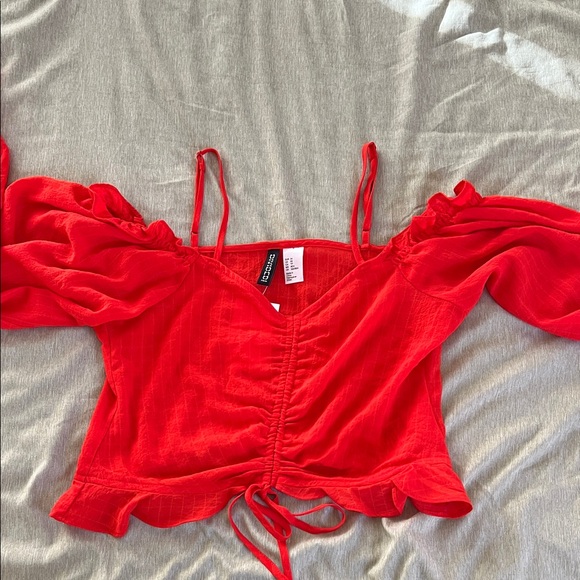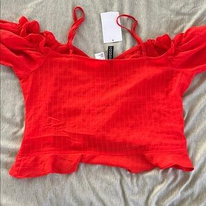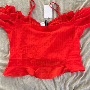 red off-shoulder top with adjustable straps / brand new / NWT / I have this top in white and put a photo of myself wearing it in the listing for reference /