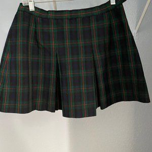 Red Olive Green Plaid Mini Skirt, Boarding School Uniform, Small, Dark Academia