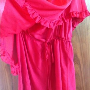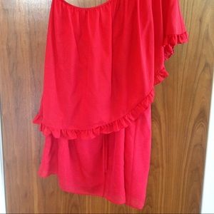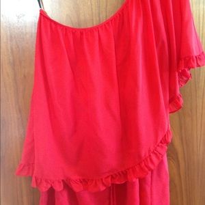 Sportsgirl (from Australia)- Never Worn! Red One Shoulder Silk Dress with Ruffles. Drawstring at waist. Lined. Aus Size 14 = US Size L/12. 100% Silk.