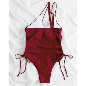 Red One Shoulder Tie Side Cheeky One Piece Monokini Swim