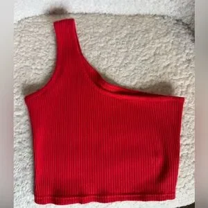 Elevate your style with this vibrant red one-shoulder ribbed top. Perfect for any occasion, this top offers a chic and modern look.