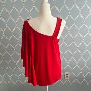 Stylish red one-shoulder top. Perfect for a chic look. 96% polyester, 4% spandex