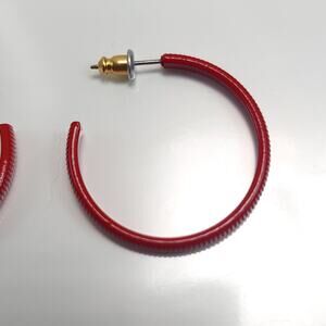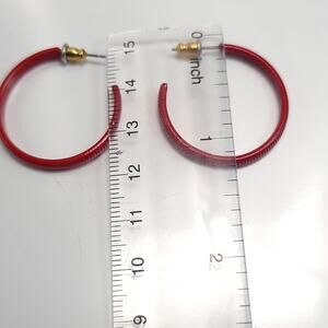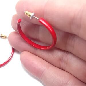 Stand out with these bold red open hoop earrings, crafted with a sleek modern look and a vibrant finish that instantly catches the eye. Their striking red color adds the perfect pop of brightness to any outfit, while the open hoop design gives them a chic, contemporary edge. Measuring about 4.5 cm (1.77 inches) in diameter, they’re lightweight and comfortable, making them perfect for both everyday wear and special occasions. Pair them with casual outfits for a fun splash of color, or with dressy evening looks for a striking statement. Their versatile style makes them easy to mix and match, whether you’re heading to work, a night out, or a festive gathering. Perfect for jewelry lovers who enjoy colorful, trendy statement pieces, these earrings also make a thoughtful and stylish gift for birthdays, holidays, or simply treating yourself to a bold and fashion-forward accessory that stands out with confidence.