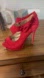 Ollio Red Faux Suede Open Toe Platform High Heel Pumps Size 7. EUC Only tried on and tried to walk in house.
