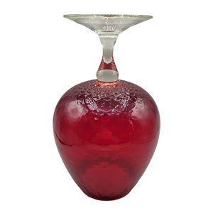 Beautiful Red Optic Empoli oversized brandy snifter with clear stem and base. Textured with a sort of basketweave design over the whole bowl. Great conversation piece for your home bar.