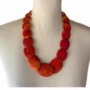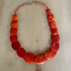 Red Orange Vintage Bovine Bone Graduated Disc Statement Necklace Boho Ethnic 22"