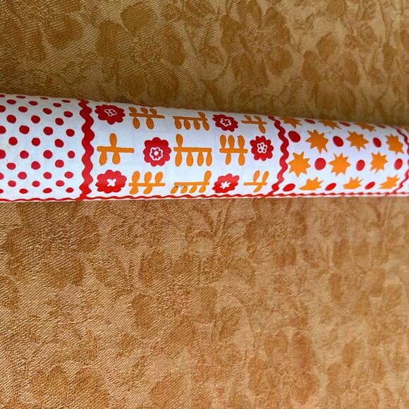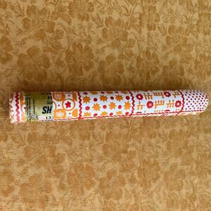 Red & Orange Vtg Shelf Liner with Partial original packaging. Shows 4 yards on packaging. Does not appear to have a sticky bottom, but rather is a liner that you would lay down on the shelf. The outside the hair does appear dusty and shows imperfections. Please refer to all photos for current condition. Could potentially be wiped down once opened, but have not attempted to clean myself. Please refer to all photos for current condition
