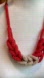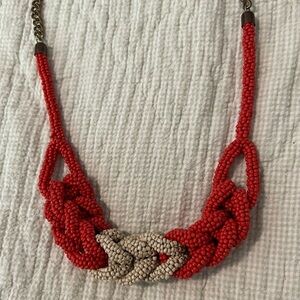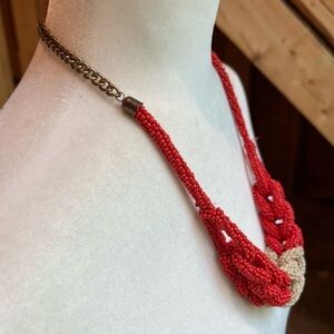 Red Orange White Beaded Braided Chunky Necklace 24” with 4” extension