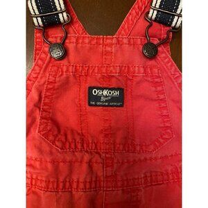 Red OshKosh B'gosh overalls with blue and white adjustable straps - 6 mo. EUC