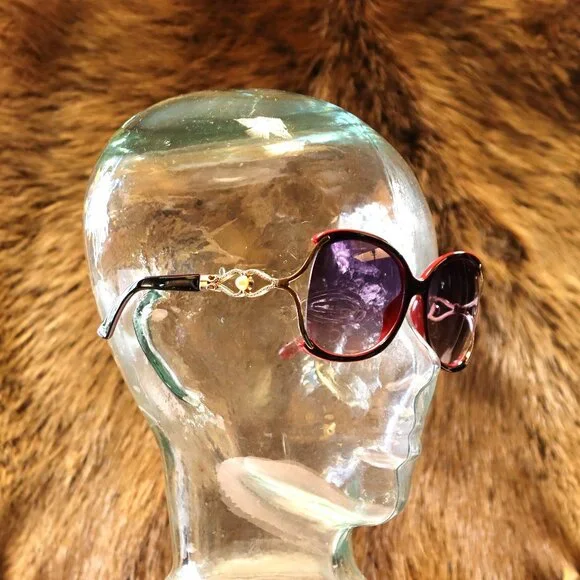 Red Oversized Sunglasses with Pearl and Gold Scroll Arms