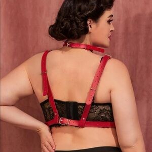 Red PU Leather Choker Harness Plus Size