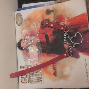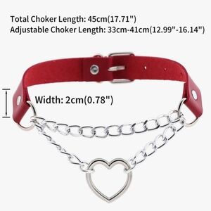 Red PU Leather Link Chain Heart Choker Collar Punk Goth BDSM Emo Women's