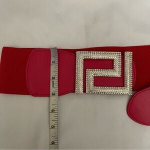 Red PU leather square buckle with rhinestones details elastic waistband belt