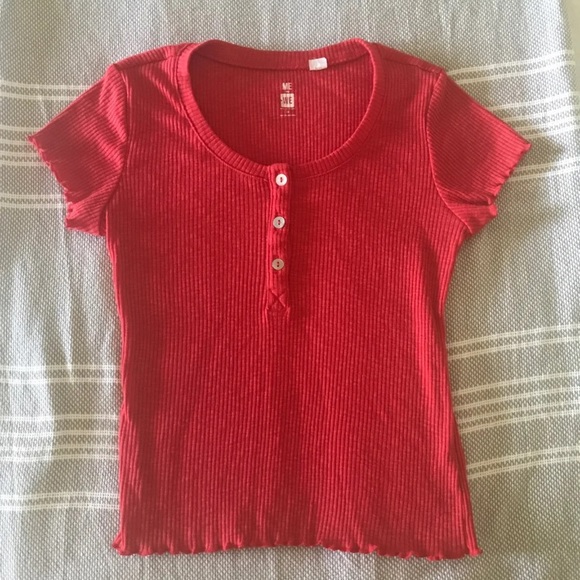 Super cute red Me to We ribbed lettuce-edge button up shirt!!