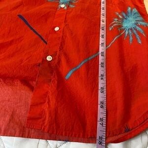 Stand out with this vibrant red shirt featuring a stylish palm tree print. Perfect for casual outings.