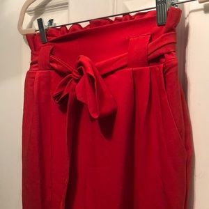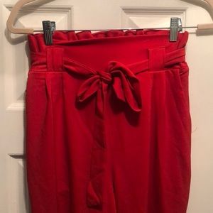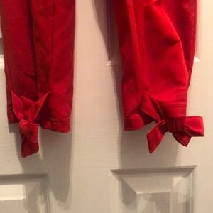Size small Red ankle length pants with elastic waist and bow tie. Cute bow detail at the ankle. Never worn.