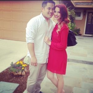 Red party dress from Charming Charlie. Worn only once for my engagement party. Cute for the fall time with tights underneath. Sheer on top and top of back.