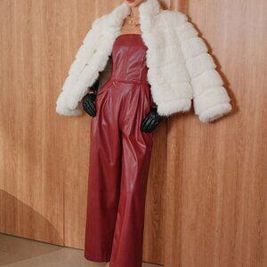 Elevate your party style with this stunning red jumpsuit, designed for a night out. It features a bandeau neckline, wide leg cut, and cropped length for a chic look. The loose fit ensures comfort while the strapless design adds a touch of elegance.