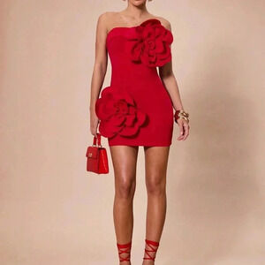 Red Party Women's Sleeveless Solid Mini Dress