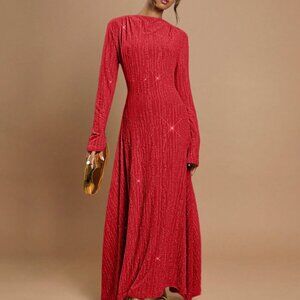 Red Party Women's Stand Collar Long Sleeve Sparkling Luxury Long Dress