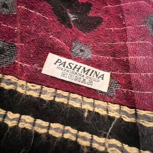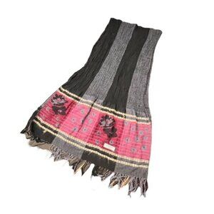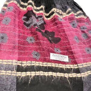 Red Pashmina Floral Scarf 26x73 Fringed Silk Blend Metallic Threads Cozy Stretch
